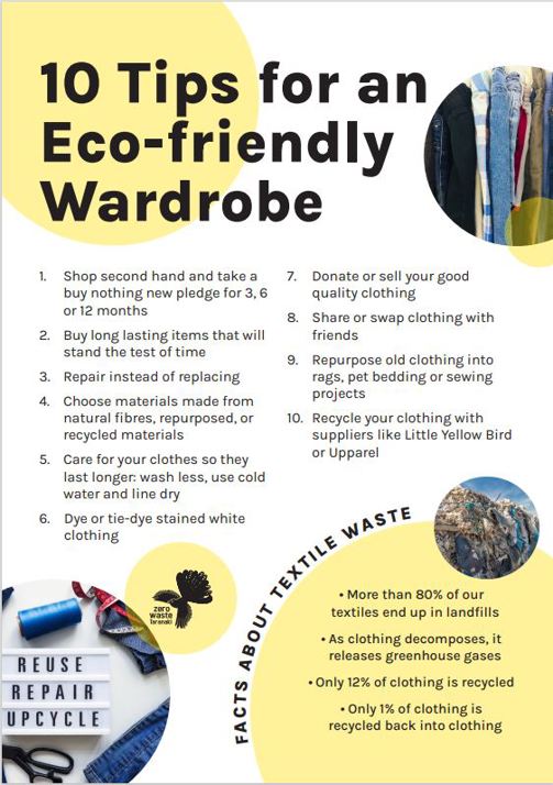 - Where practical, purchase good quality clothing that will last or can be easily repaired.